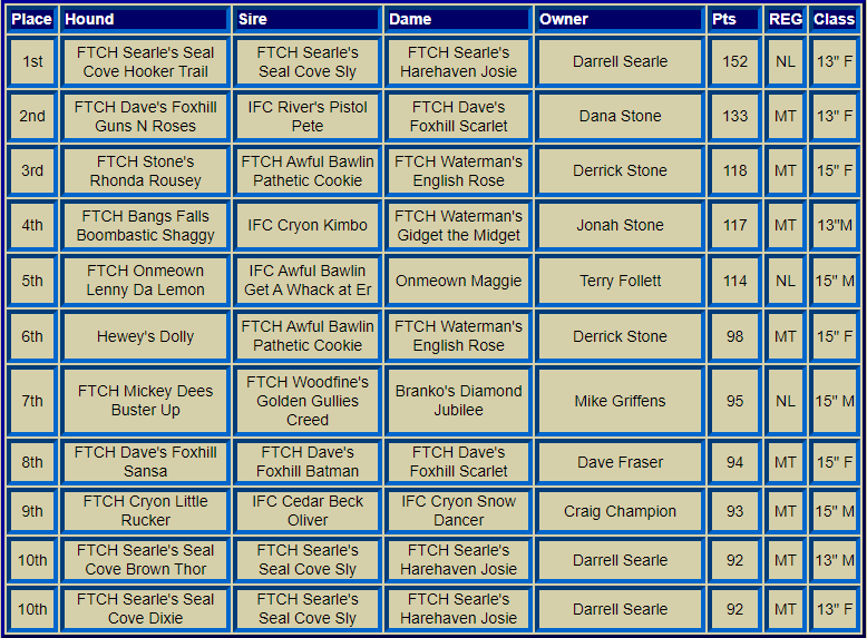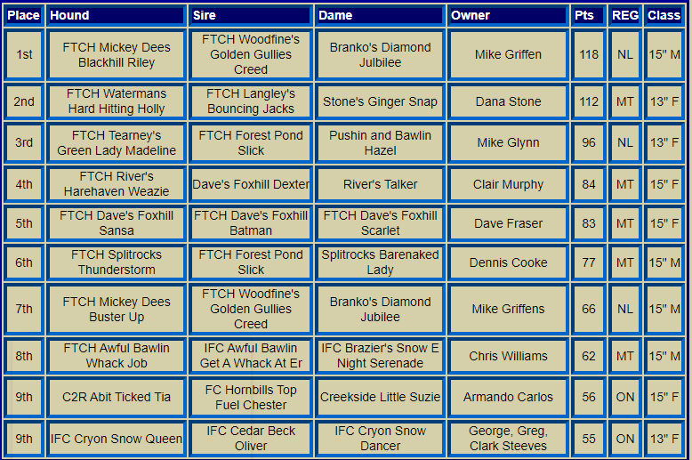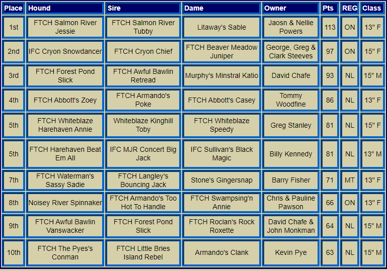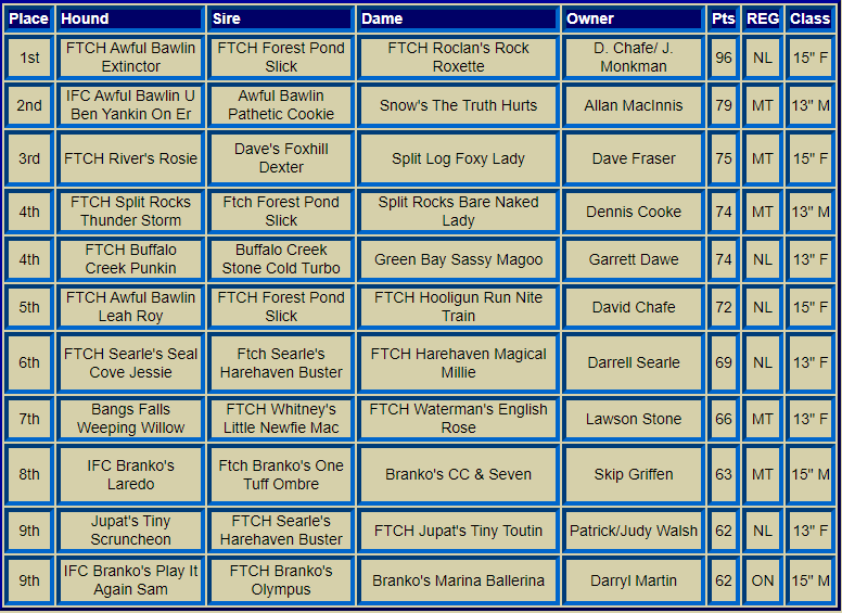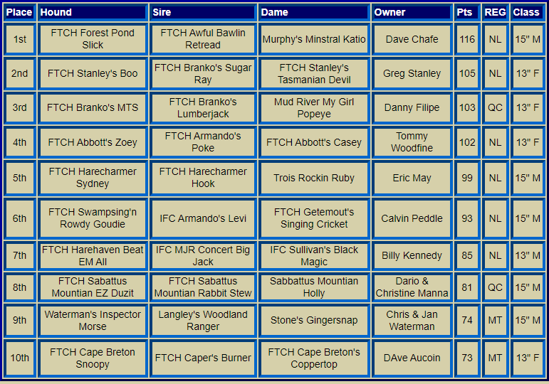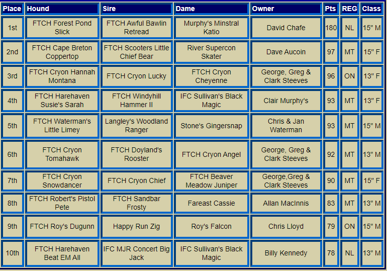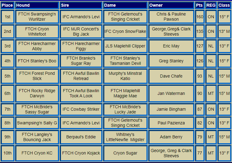 Canadian Nationals Top Ten Hounds